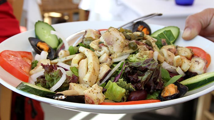 İçecekler ; 70 ml. Ouzo Barbagianni Blue veya 1 Lt Şarap, su veya meşrubat
